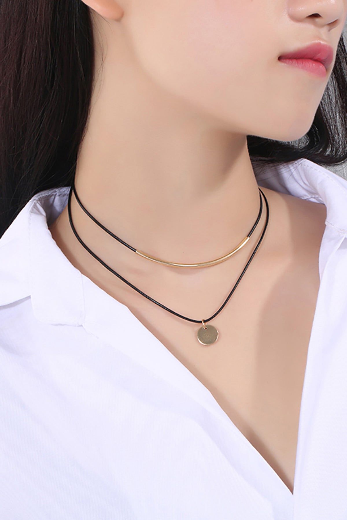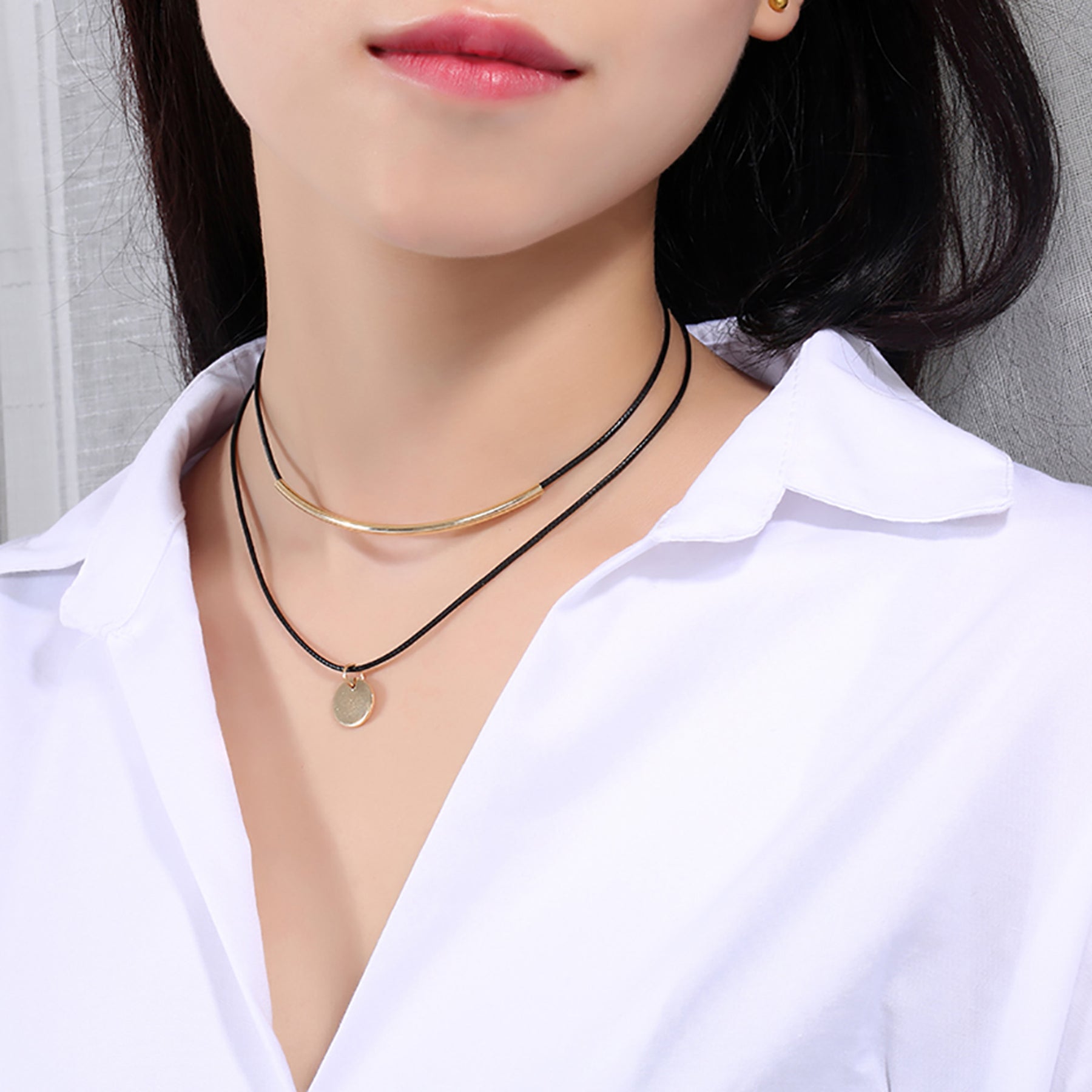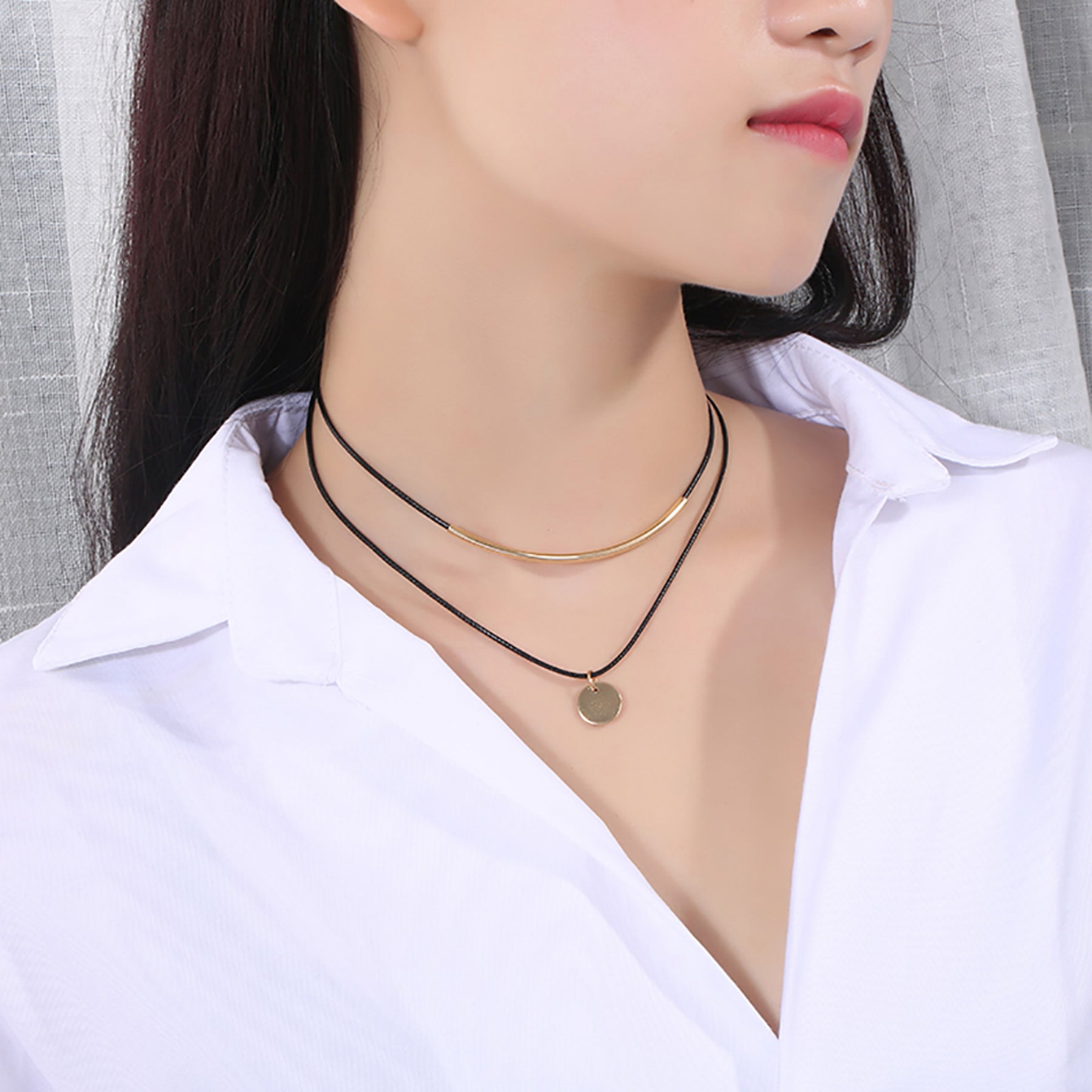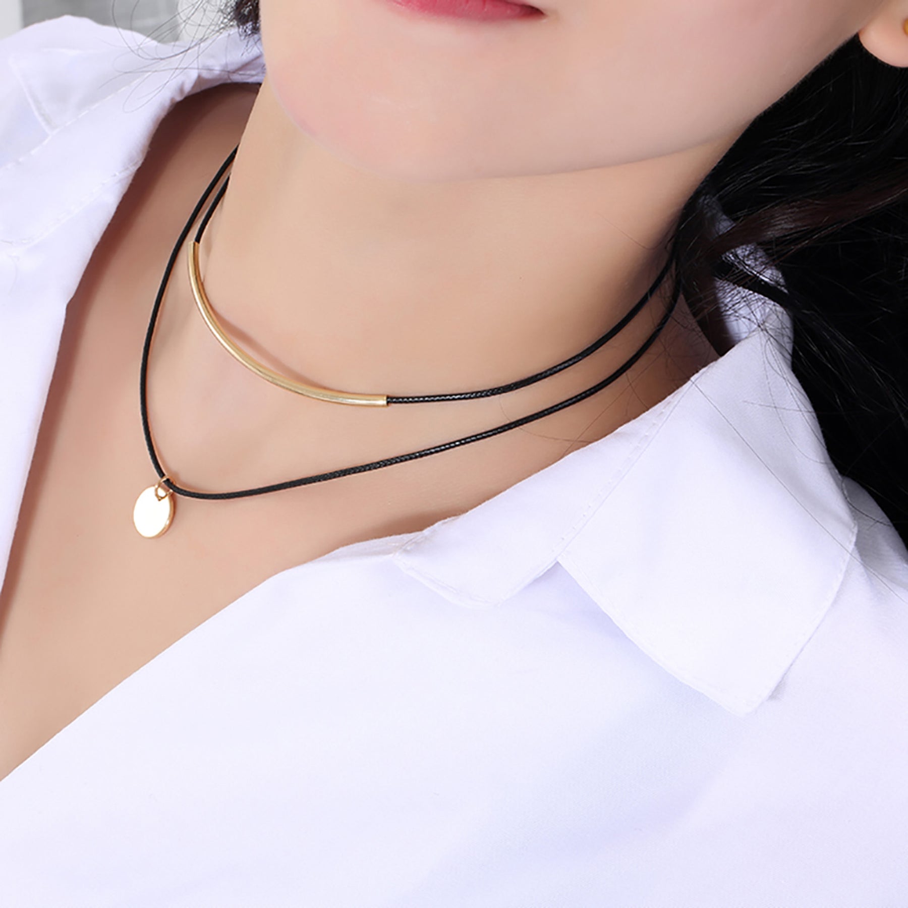 Janus Medallion Coin Pendant Black Leather Layered Choker Necklace
