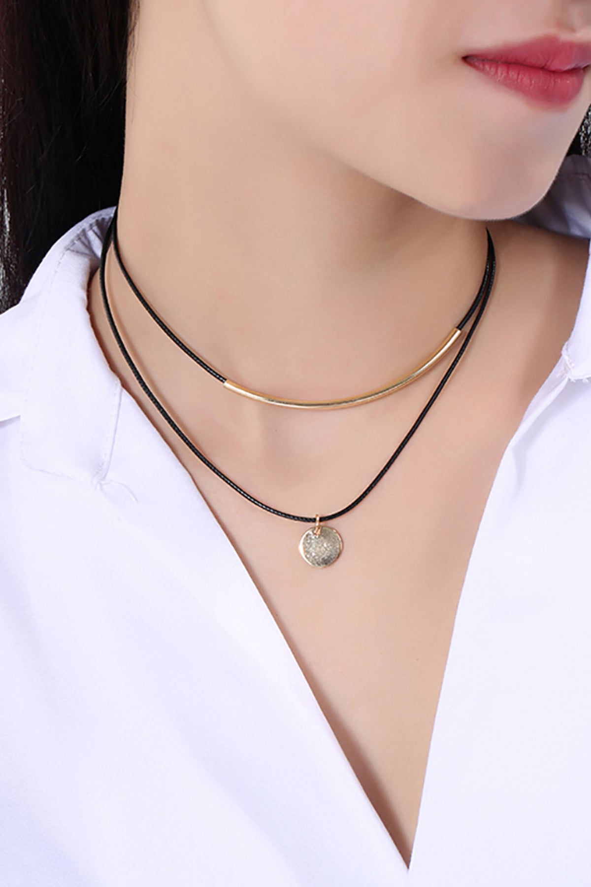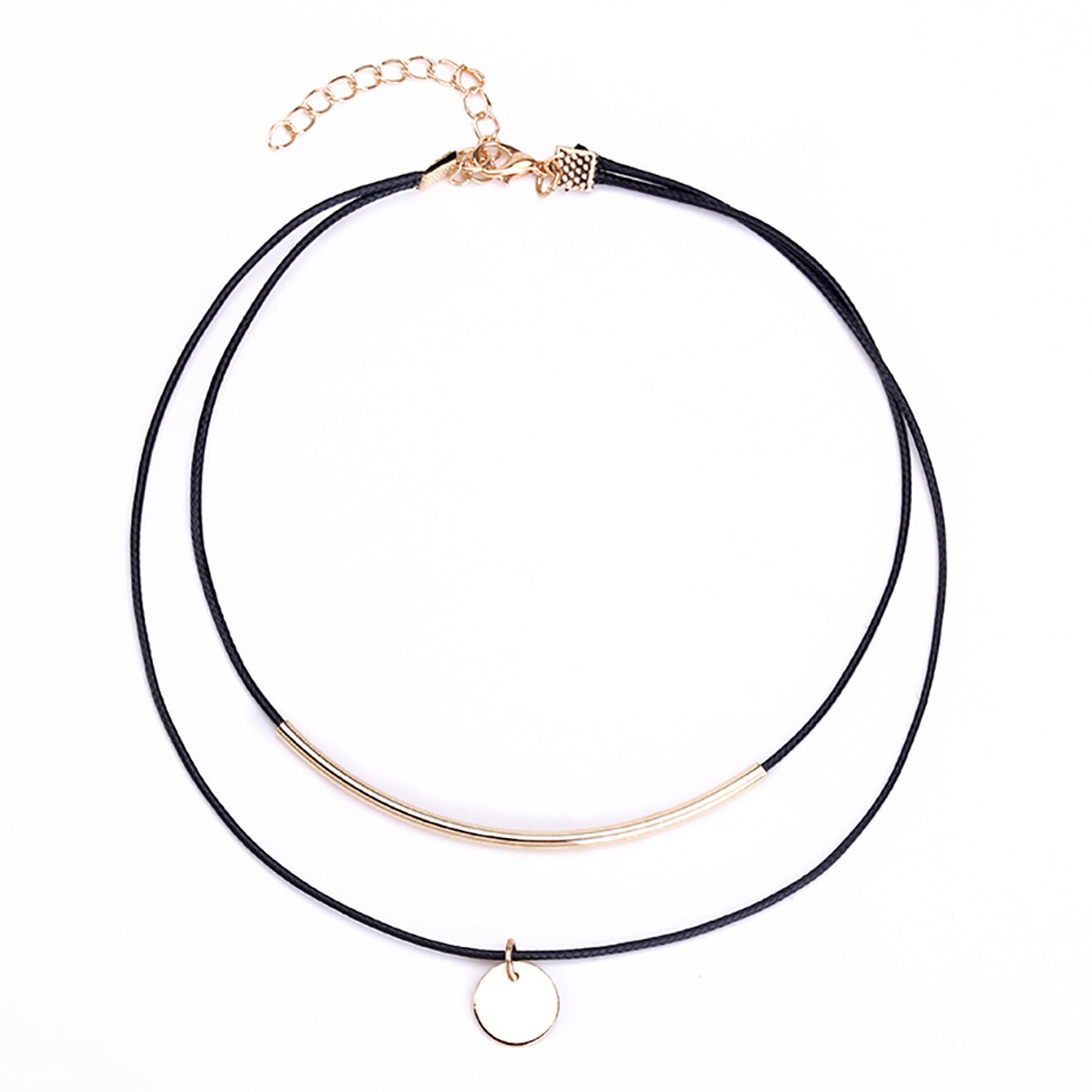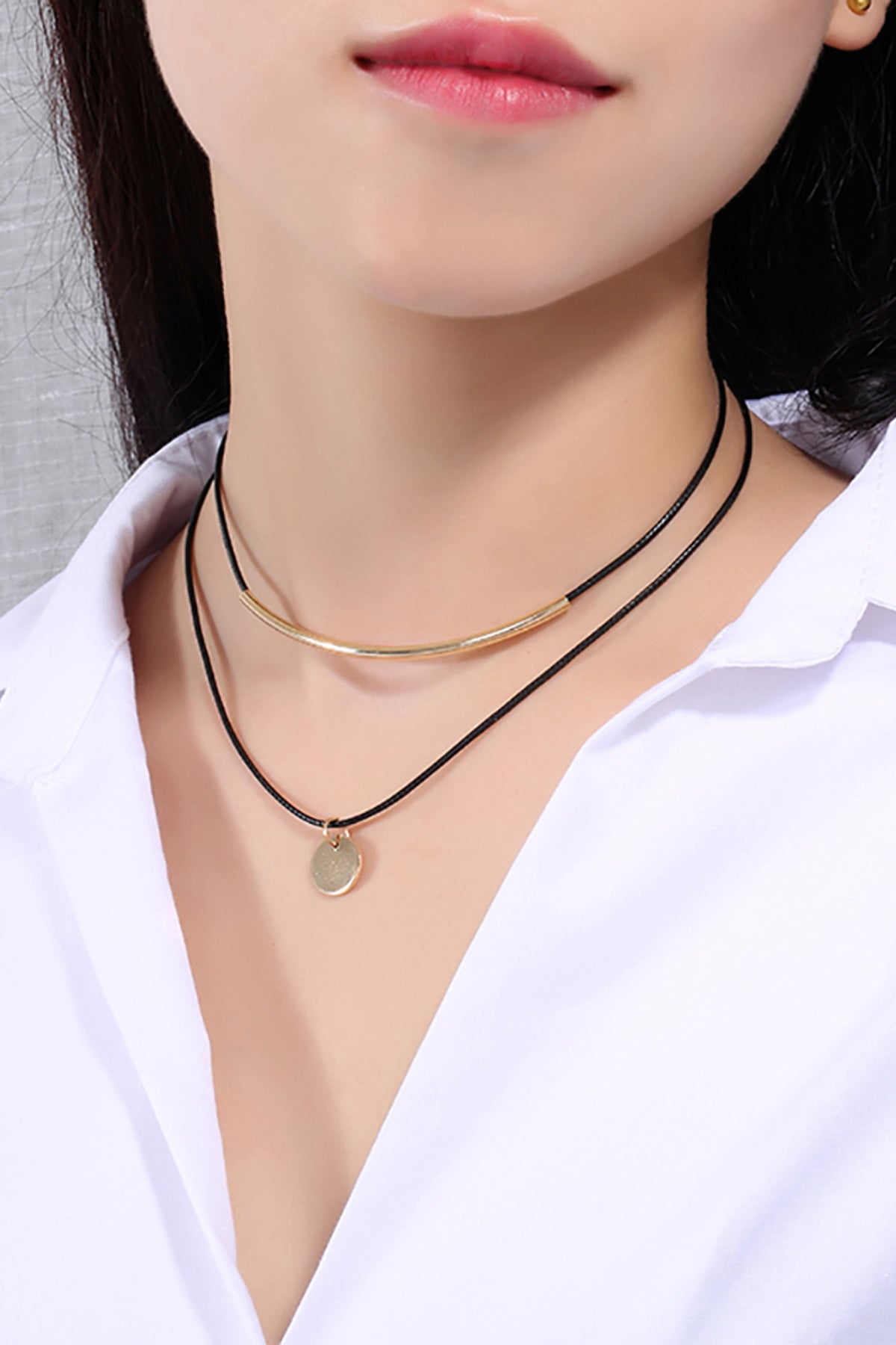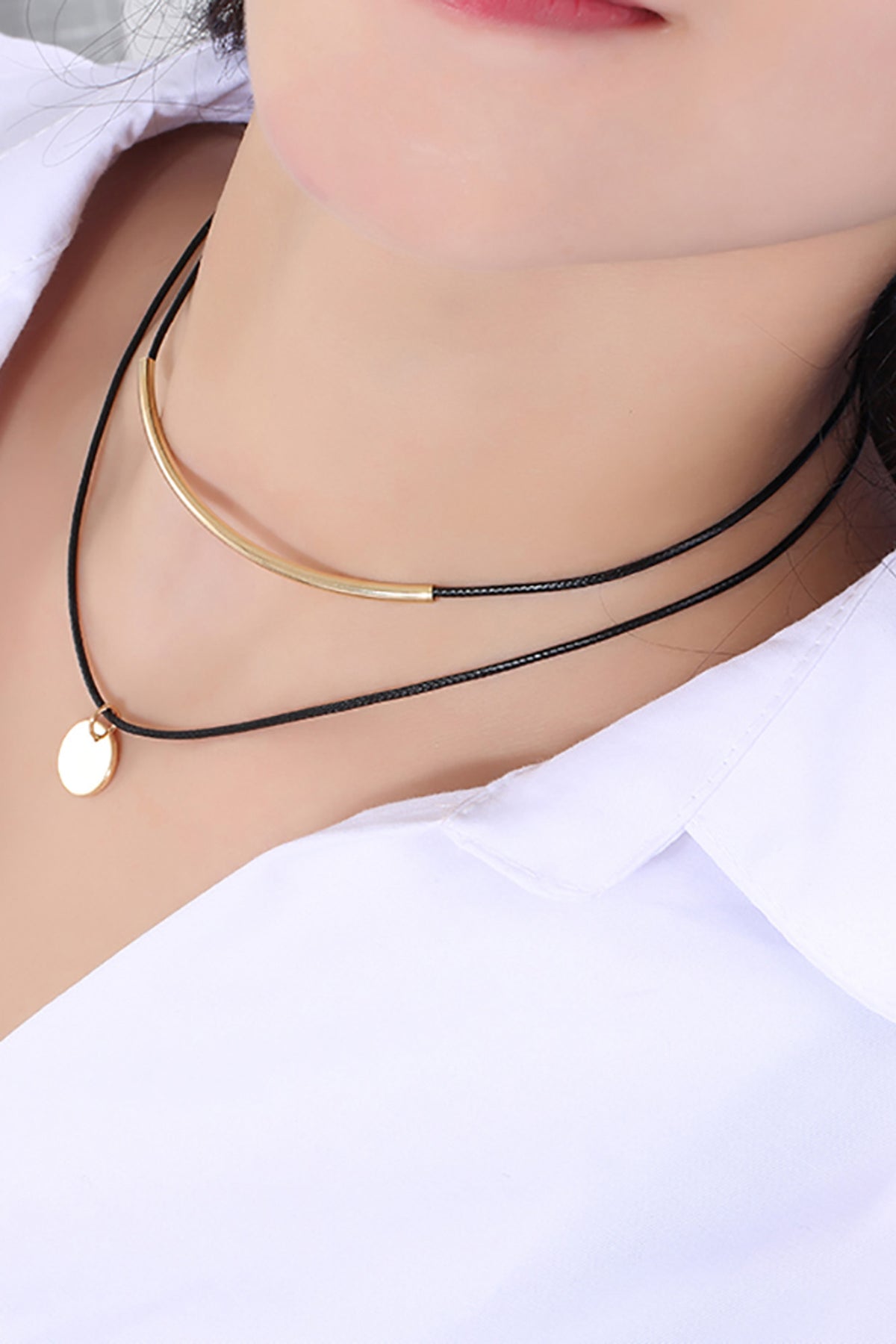 Janus Medallion Coin Pendant Black Leather Layered Choker Necklace
