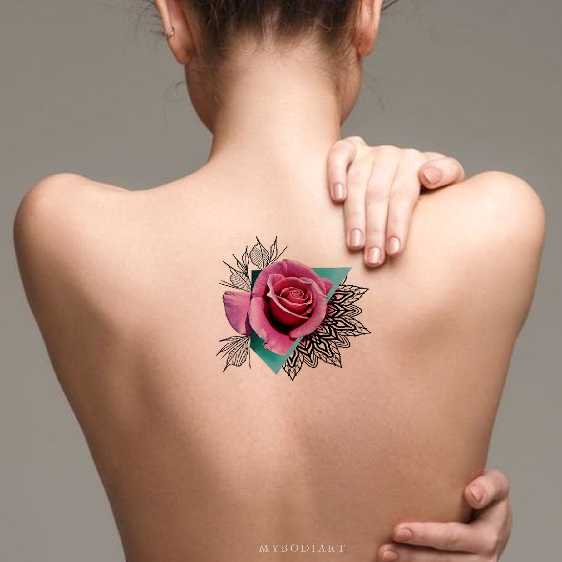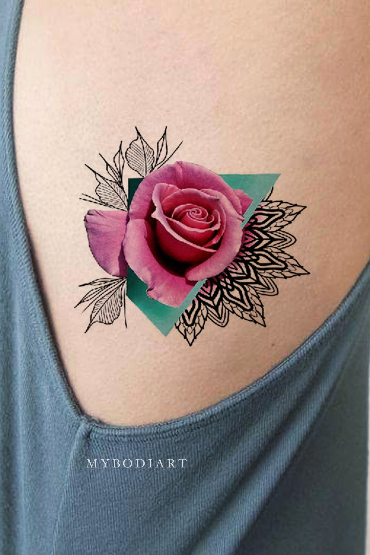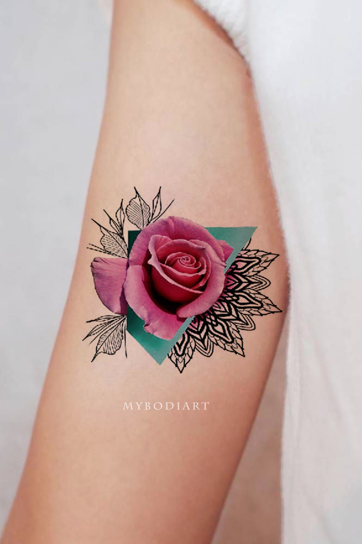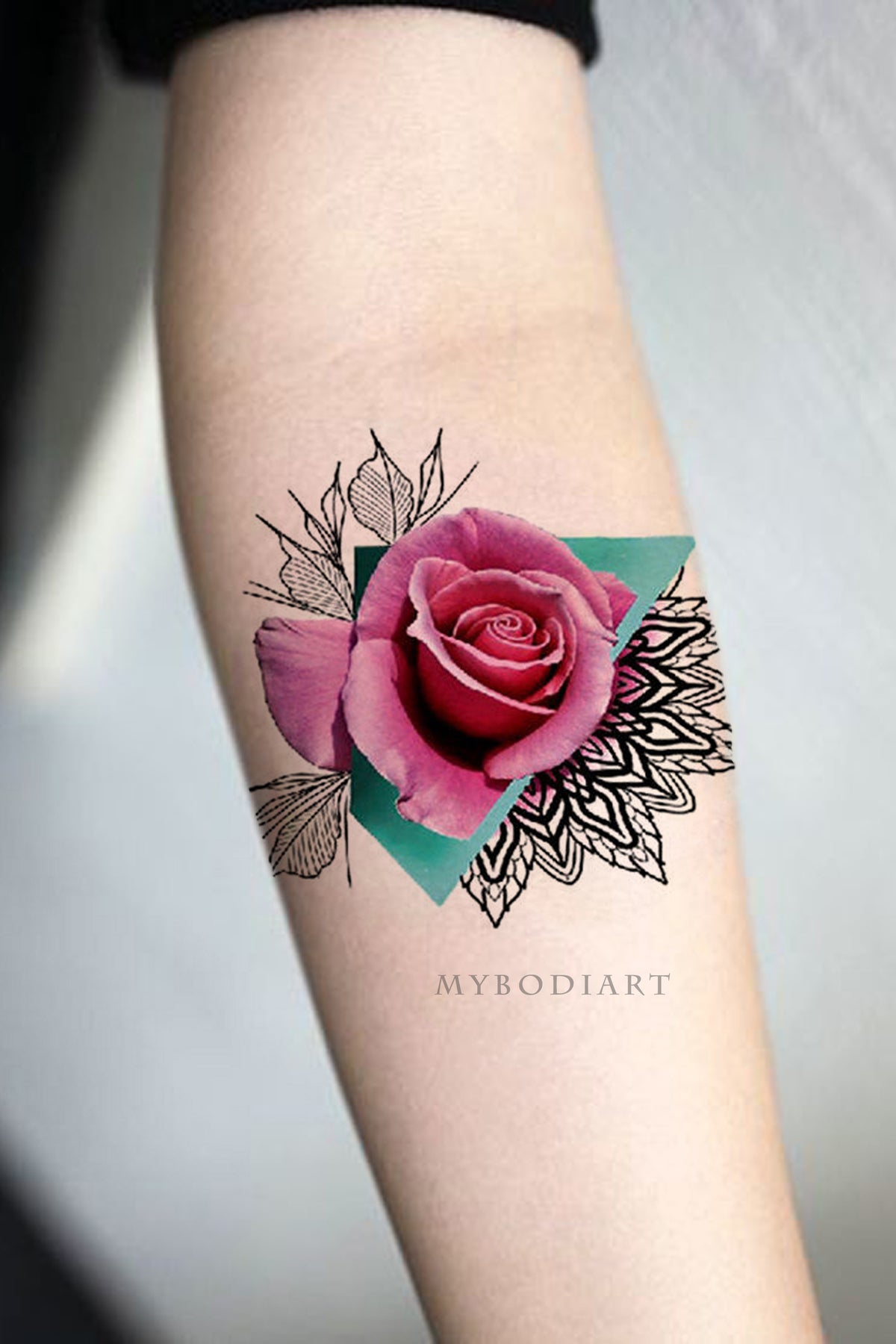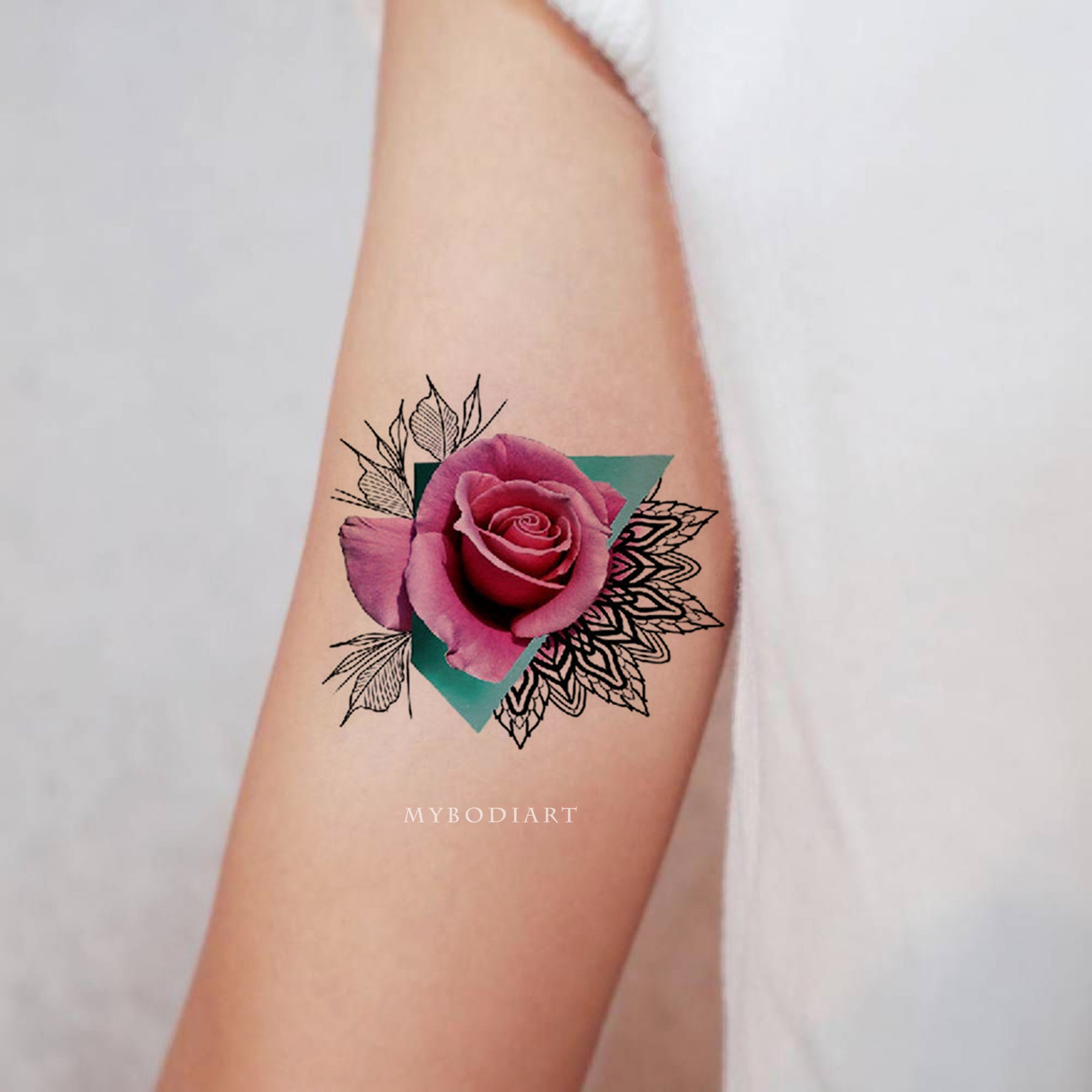 Kaylee Watercolor Pink Rose Geometric Mandala Temporary Tattoo