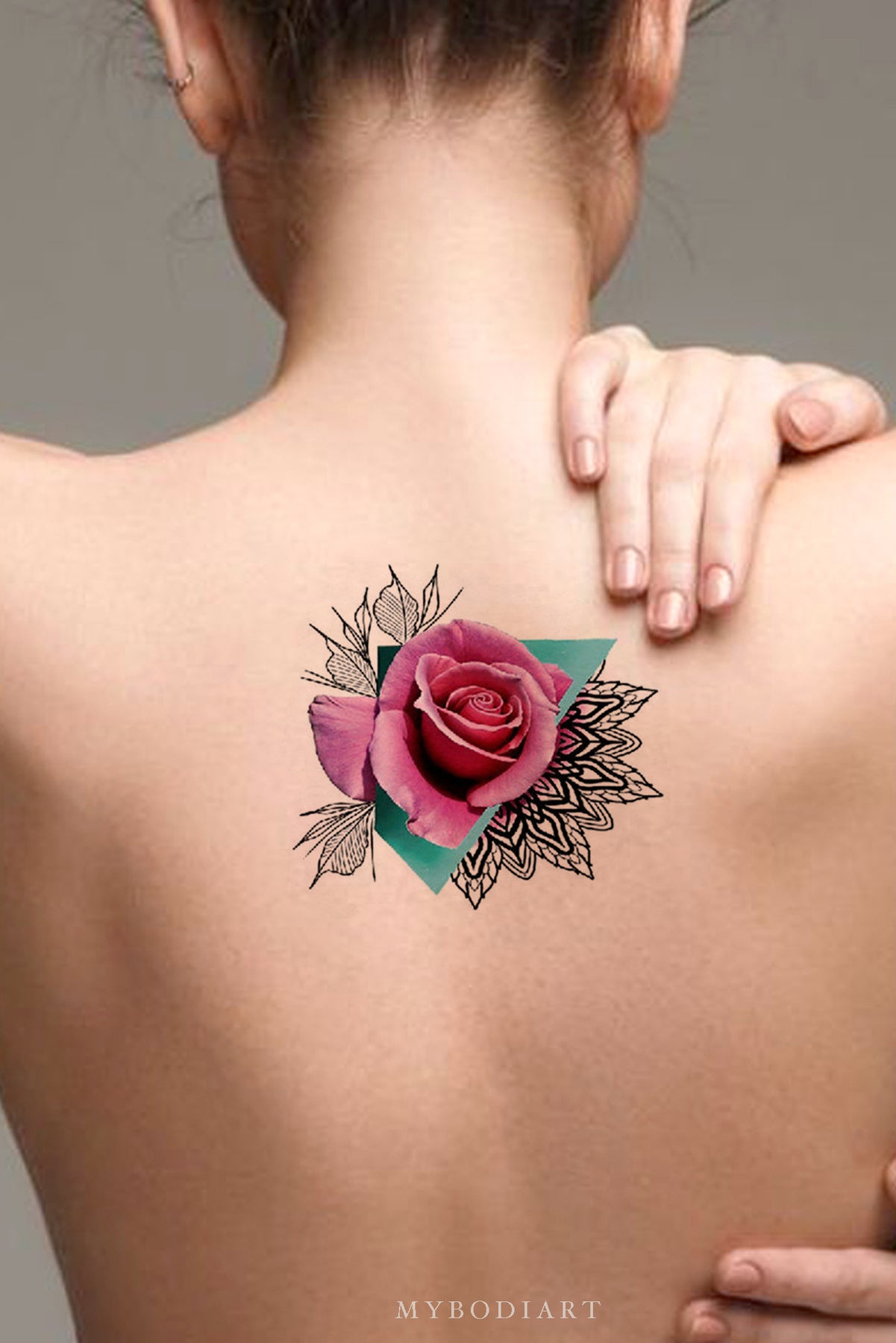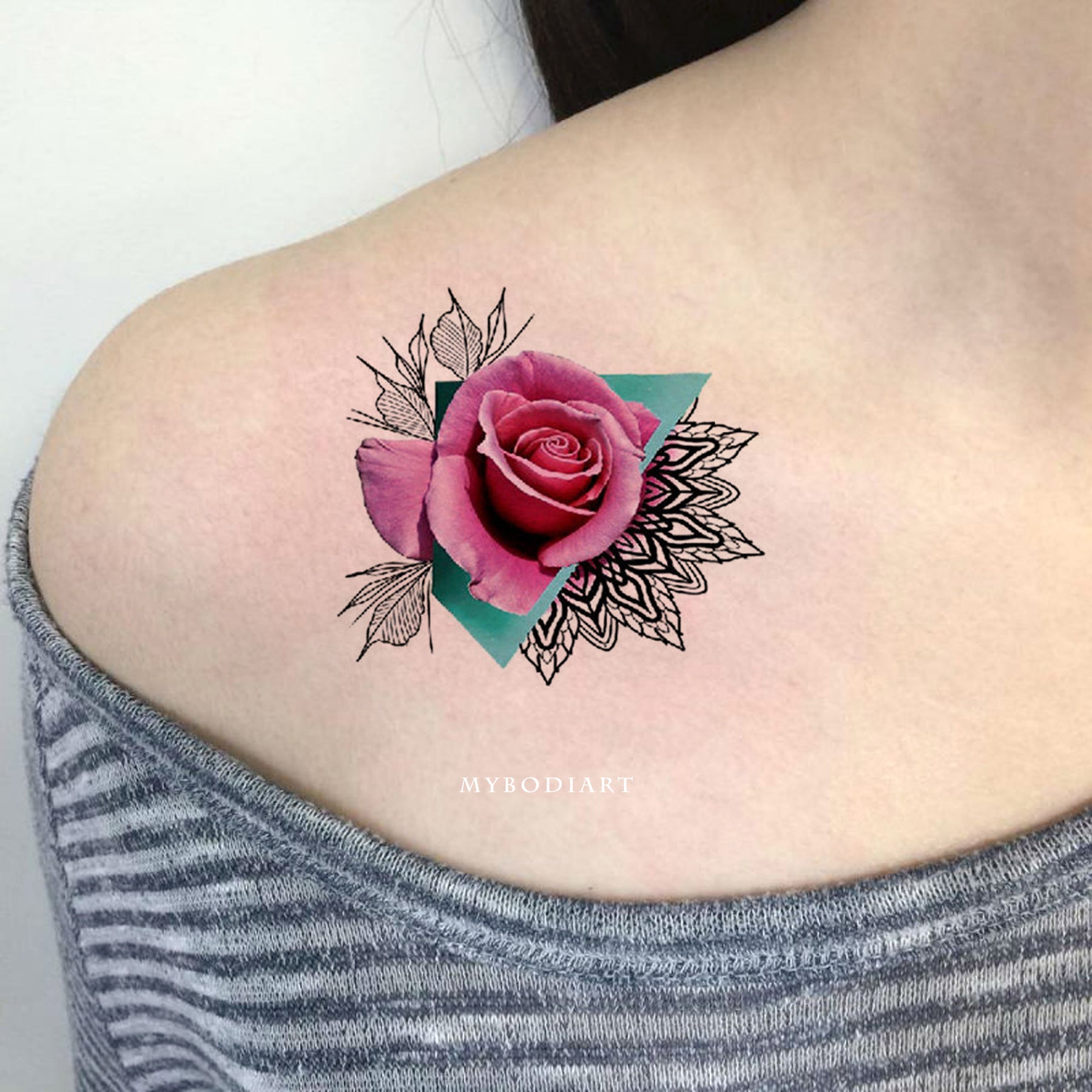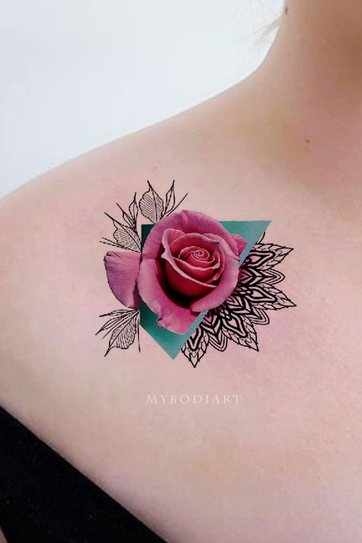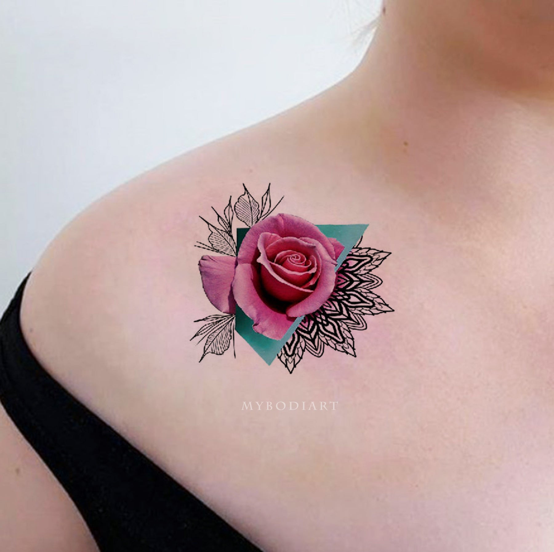 Kaylee Watercolor Pink Rose Geometric Mandala Temporary Tattoo
