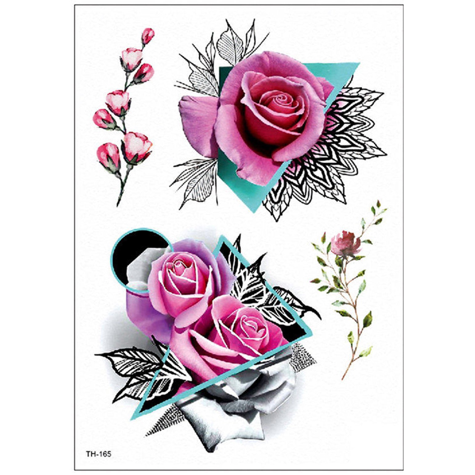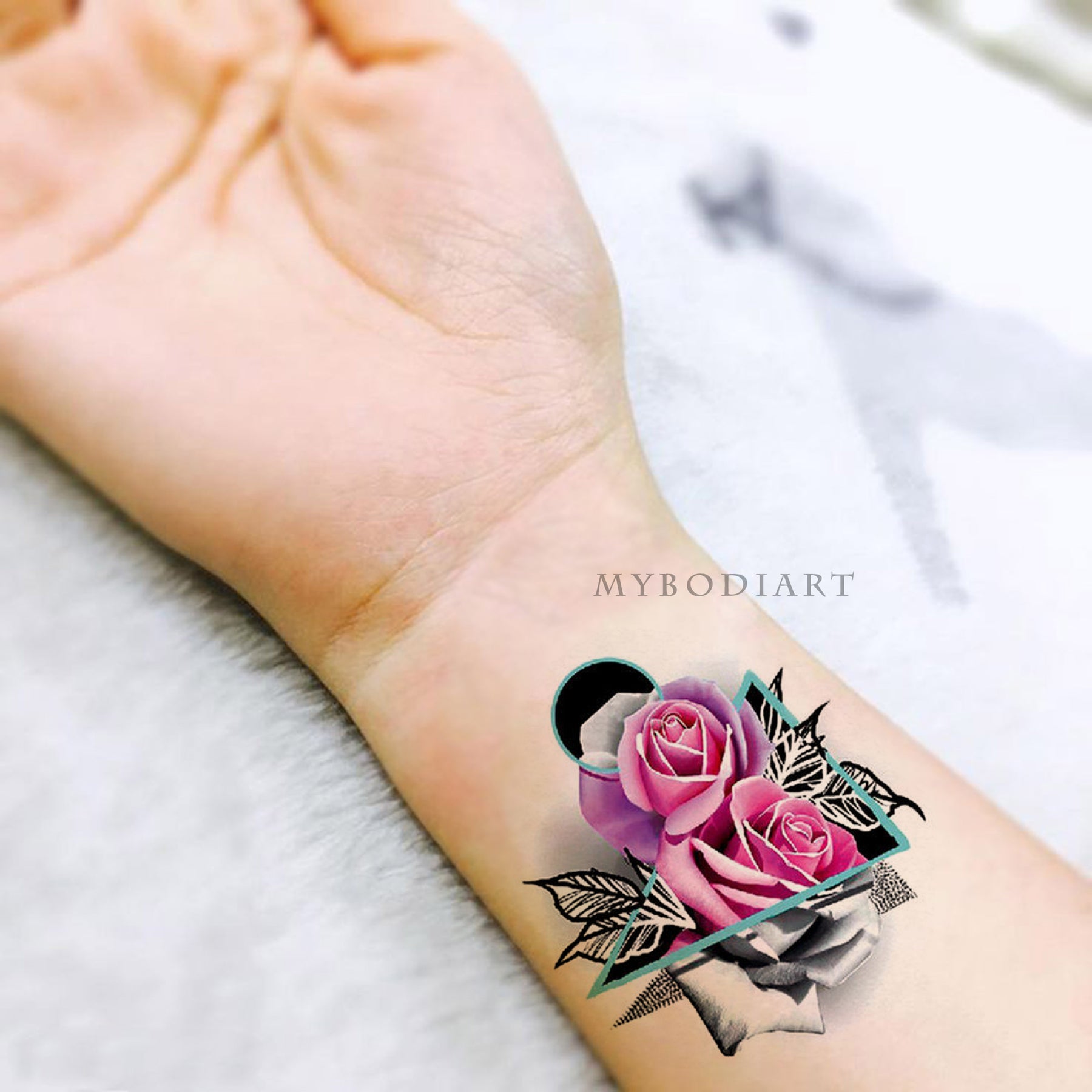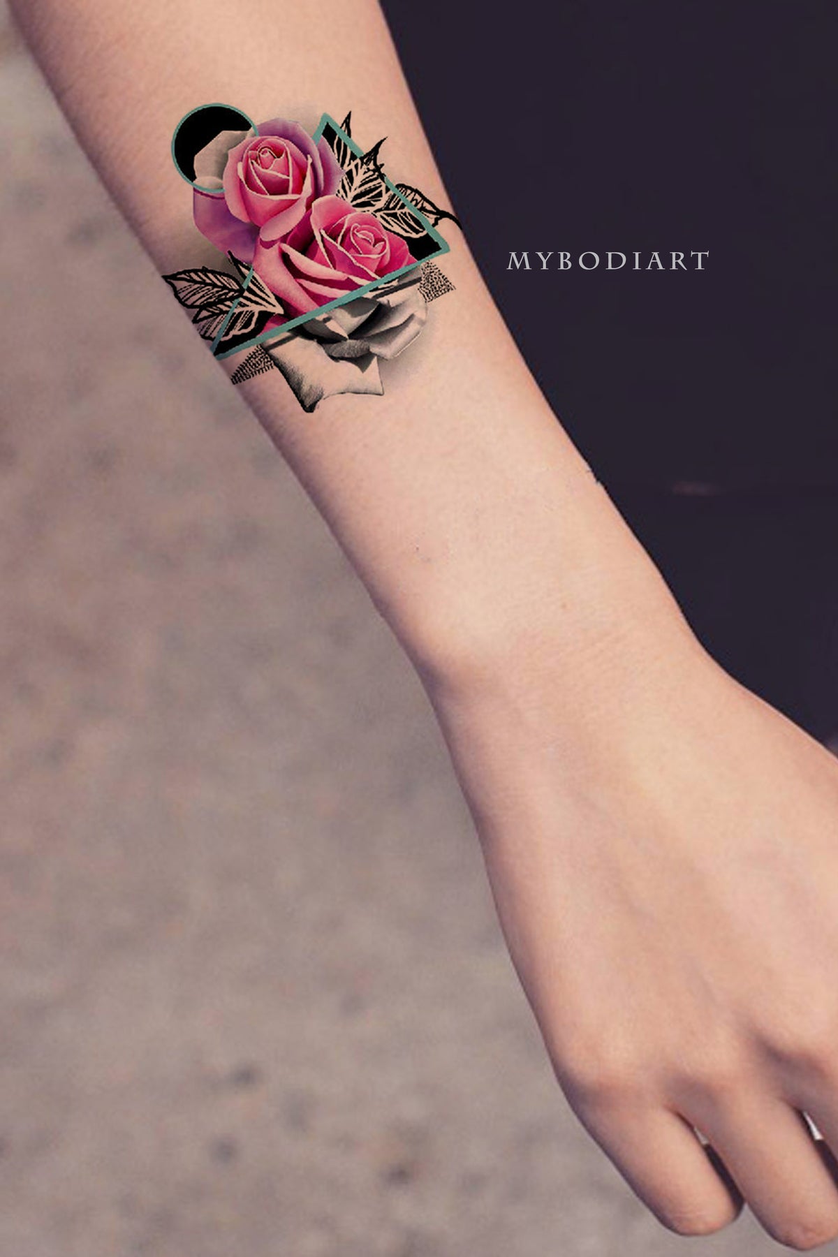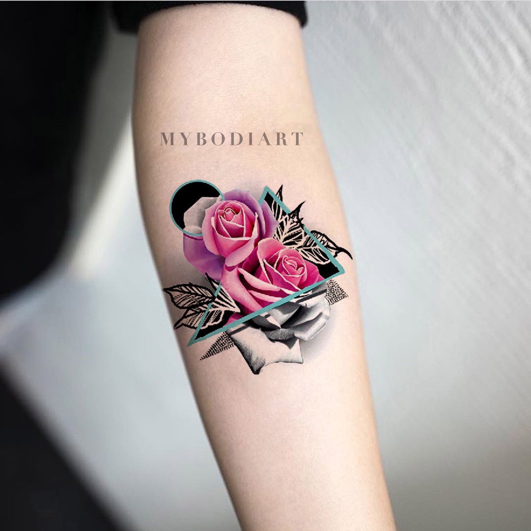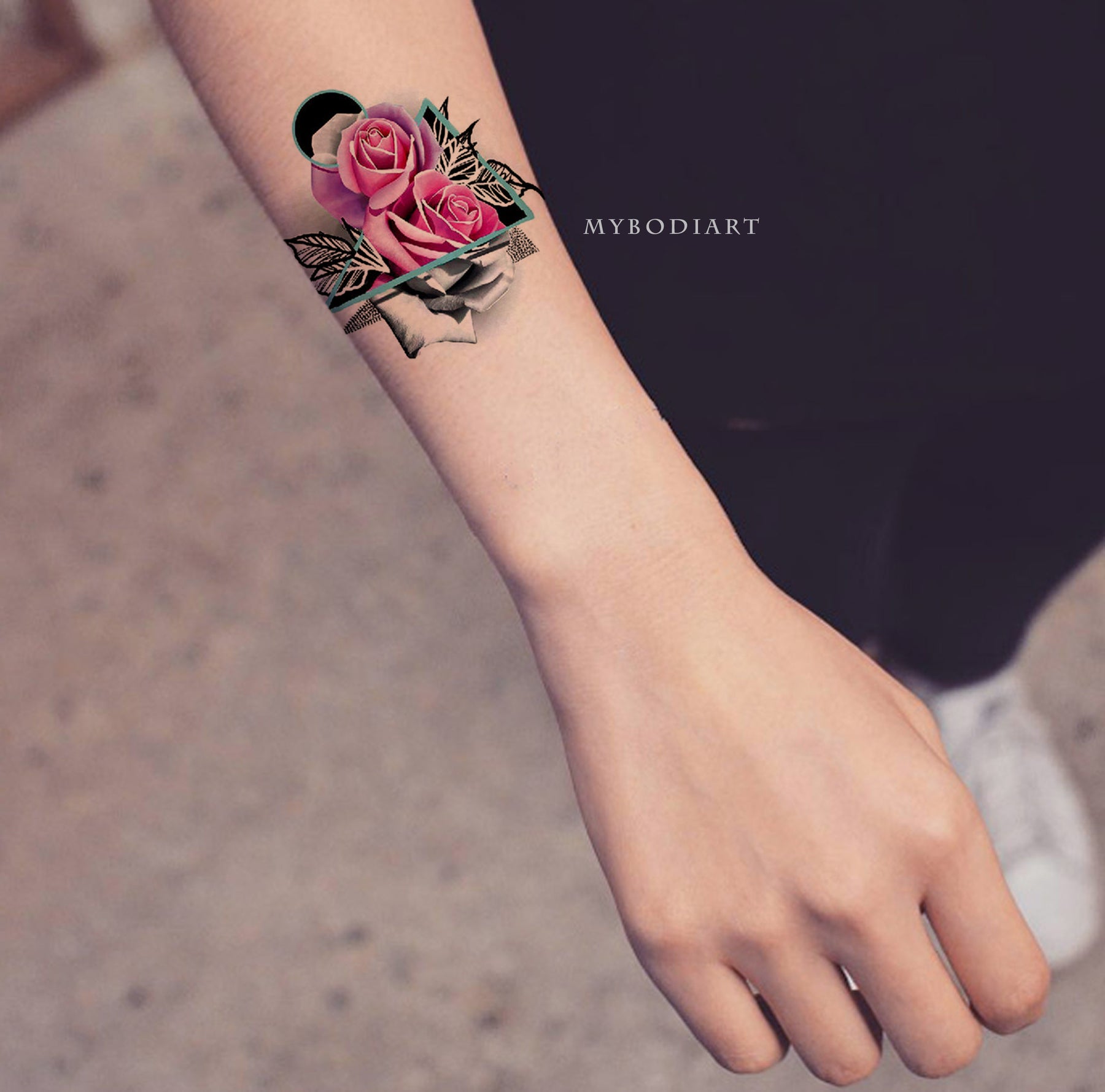 Kaylee Watercolor Pink Rose Geometric Mandala Temporary Tattoo