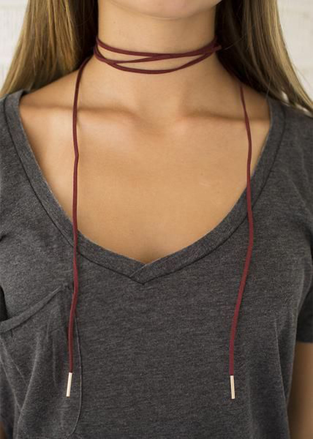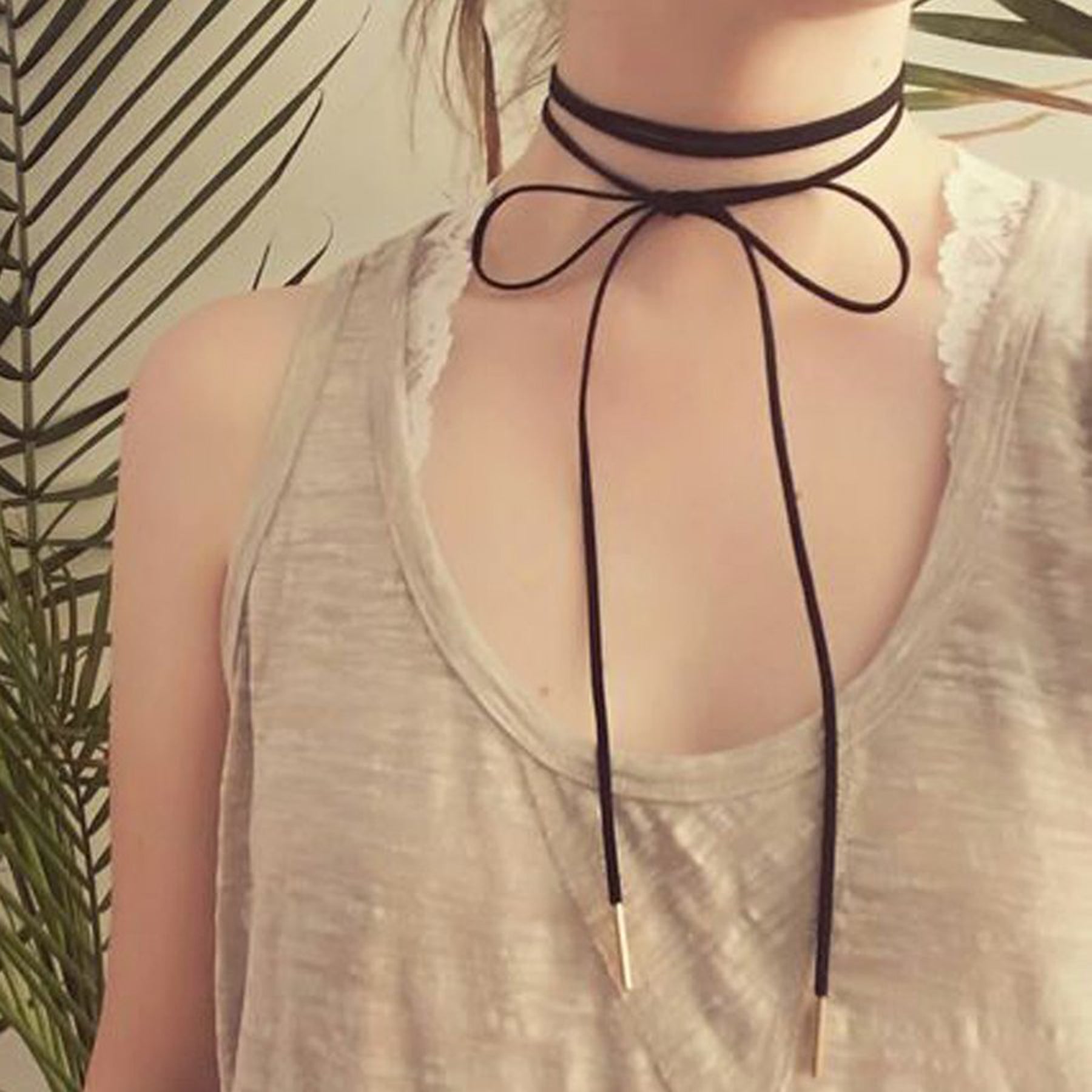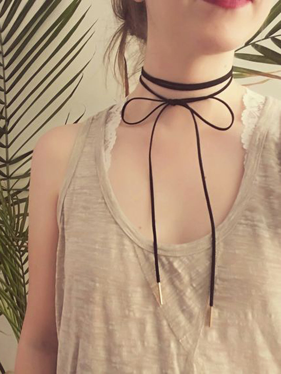 Laura Suede Leather Tie Up Wrap Choker Necklace