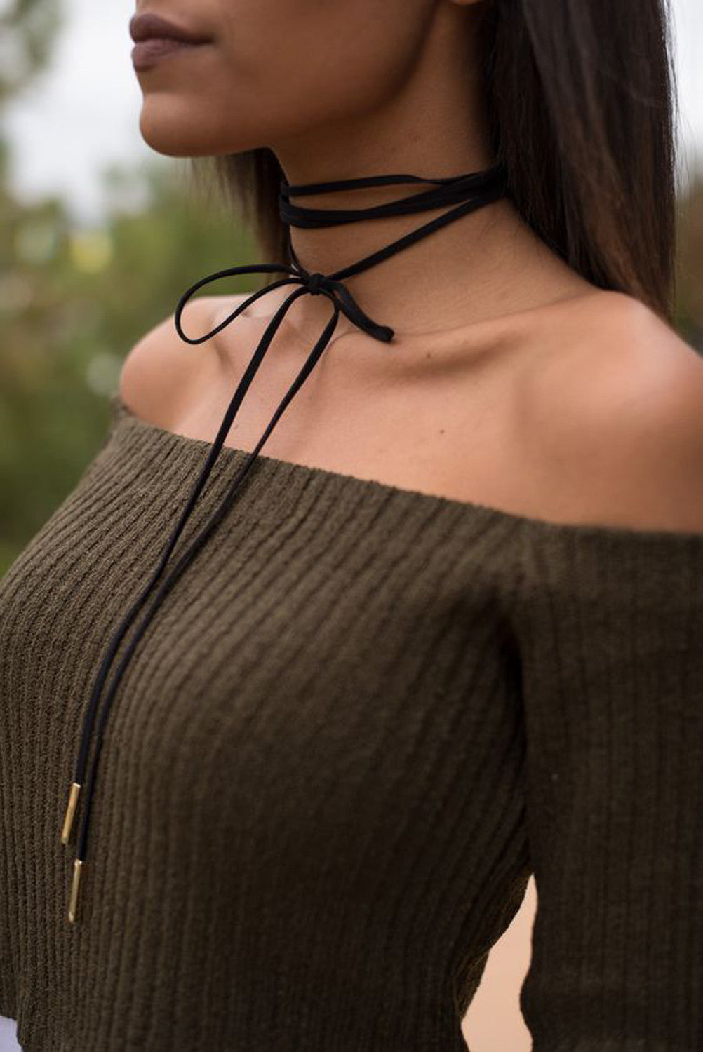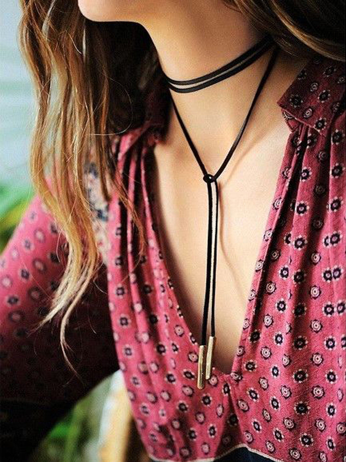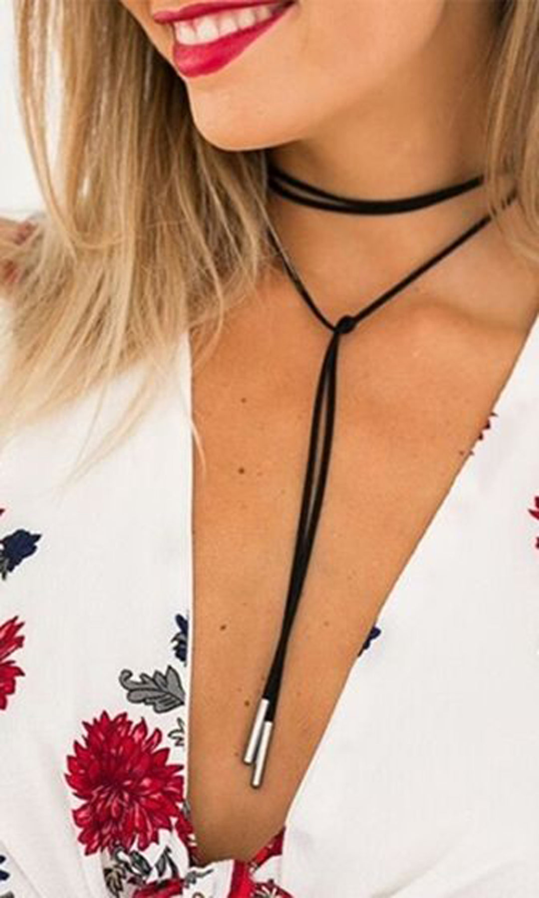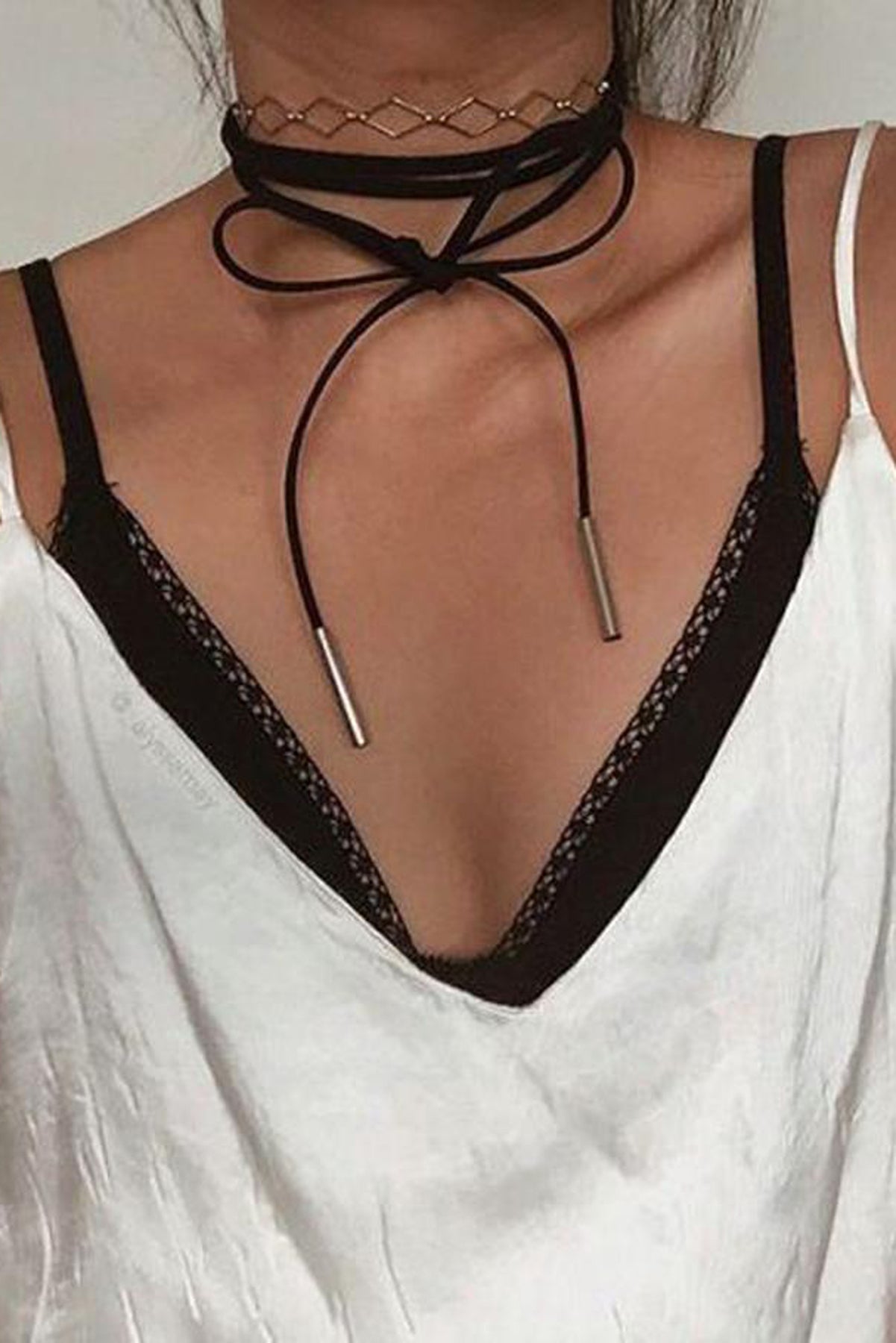 Laura Suede Leather Tie Up Wrap Choker Necklace