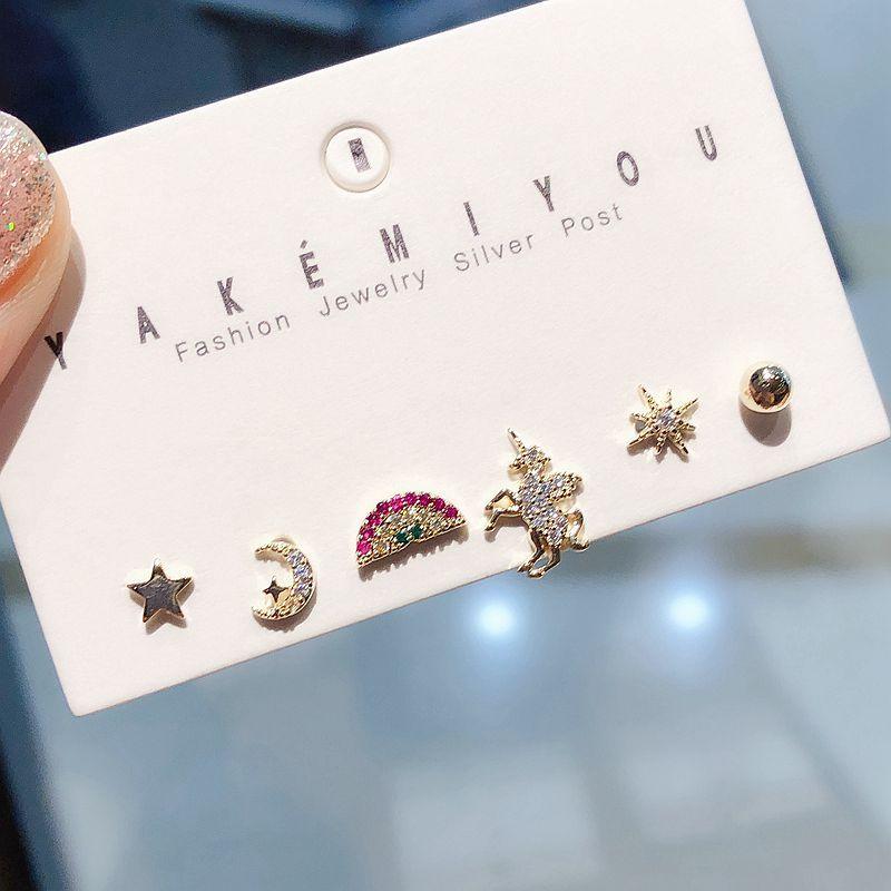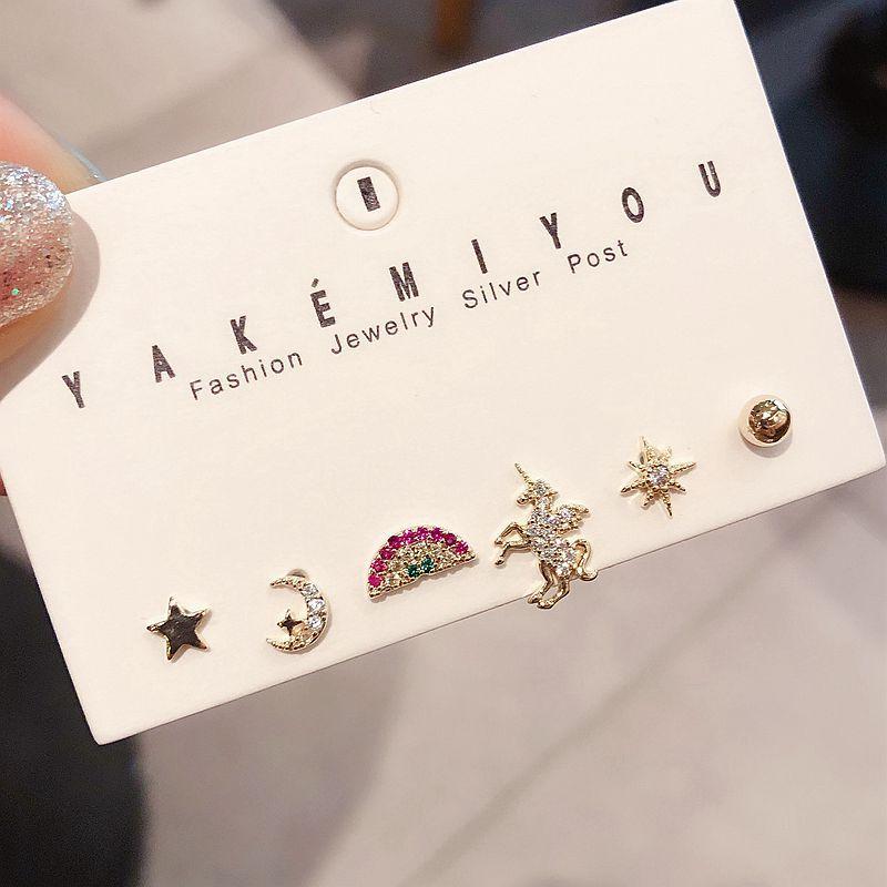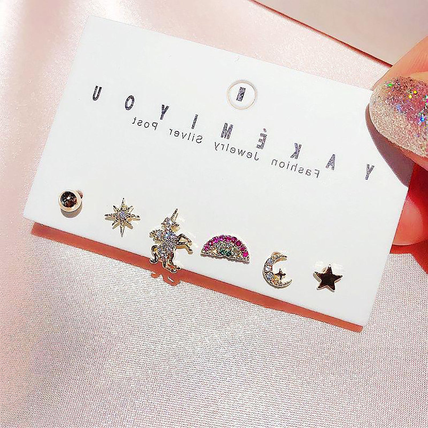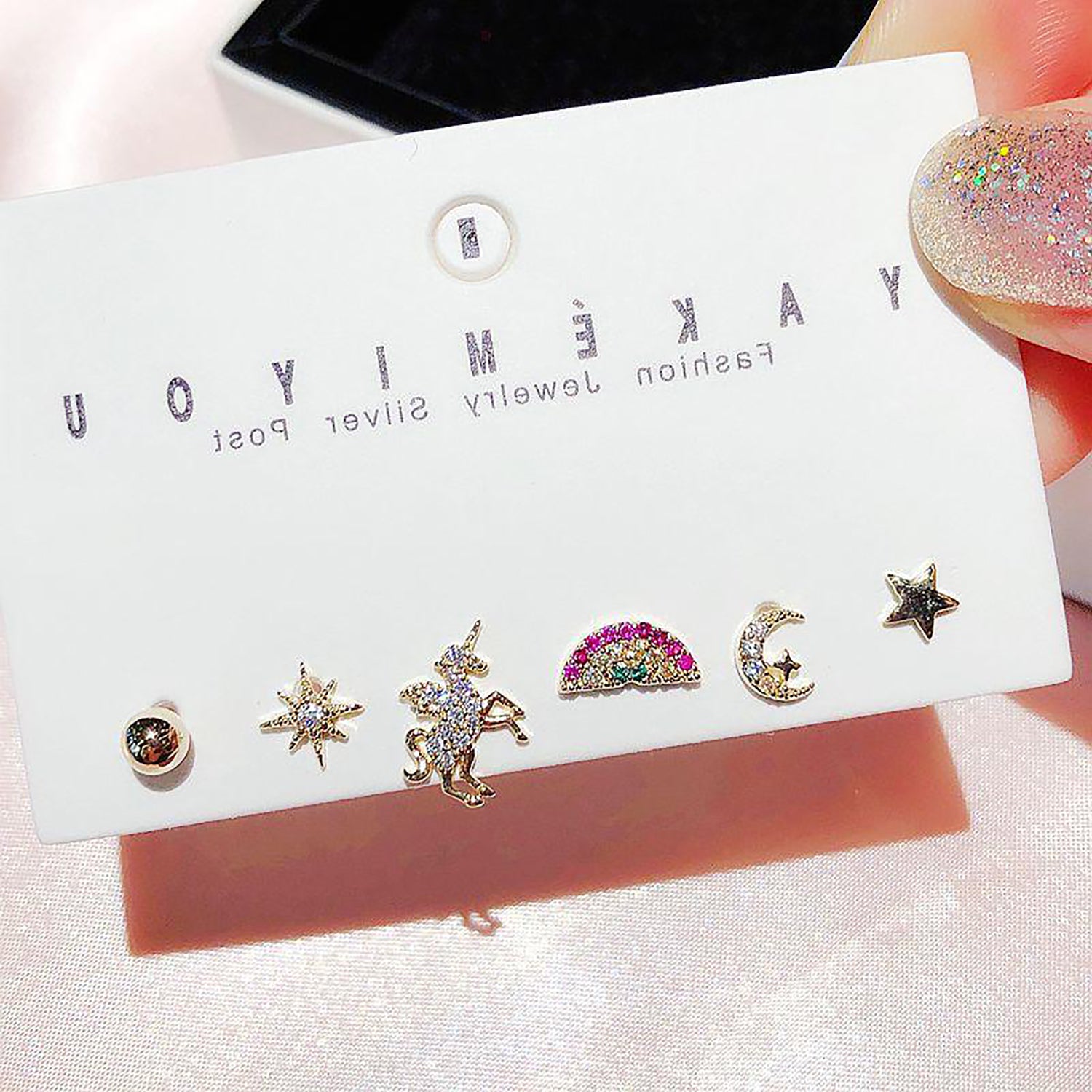 Makena Cute Rainbow Unicorn Star Moon Earring Studs Set 6 Pieces