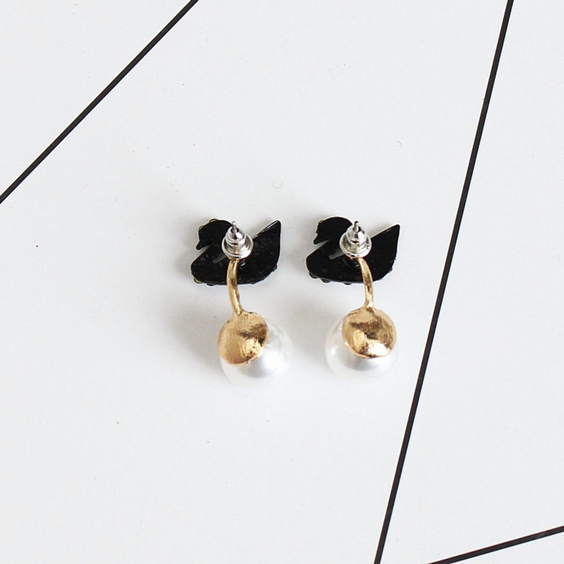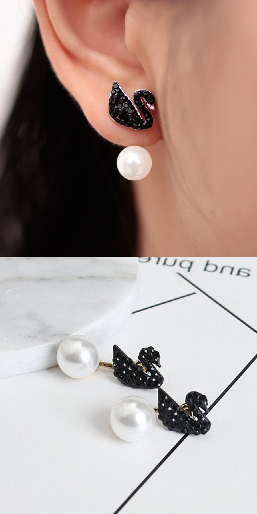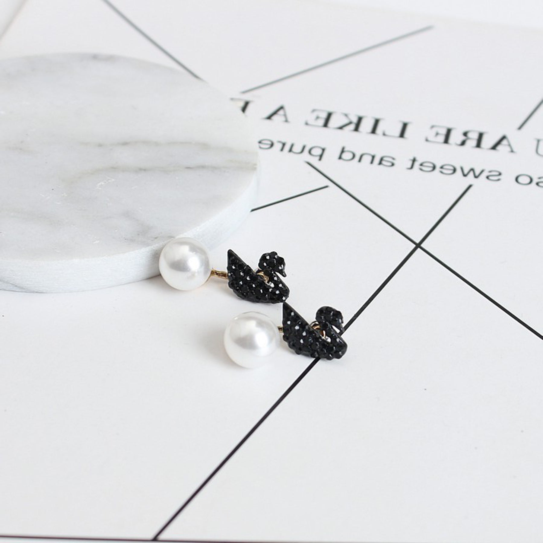 Mistik Black Swan Crystal Pearl Drop Ear Jacket Earrings