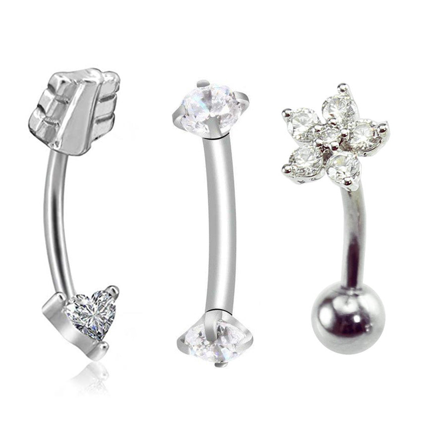 - 1 Laurie Crystal Flower Rook Piercing Jewelry Curved Barbell in Silver