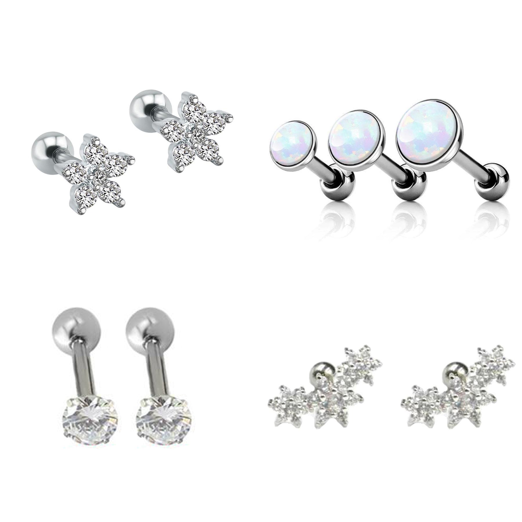 • 1 Set of 3 Pieces Dazzle Opal Ear Piercing in Opalite 3mm, 4mm, 5mm in Silver