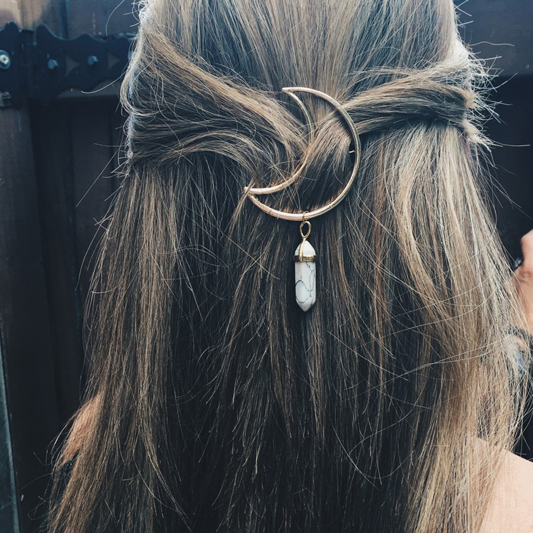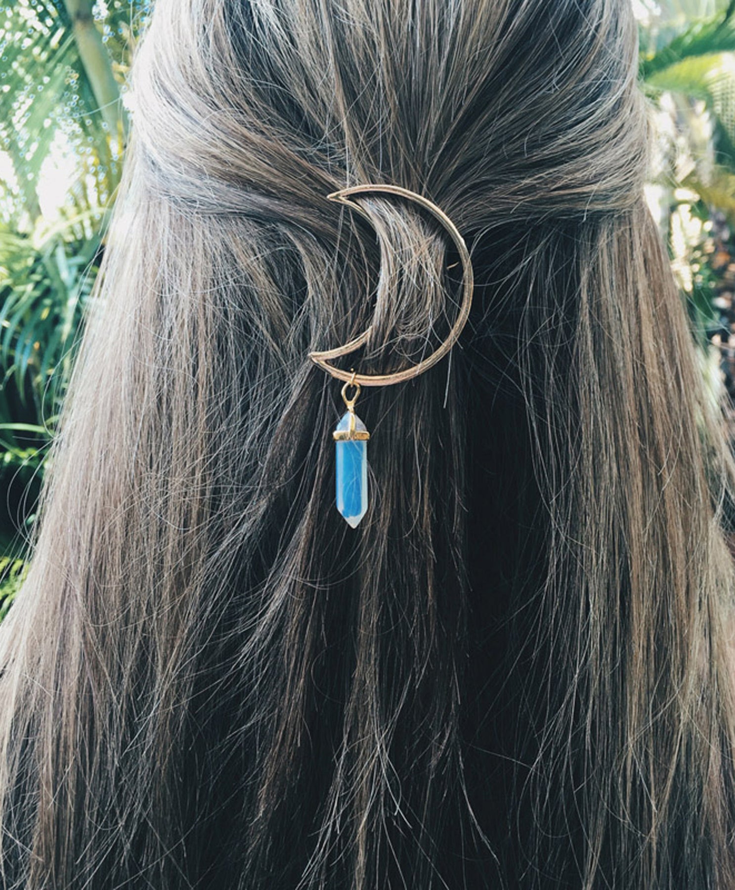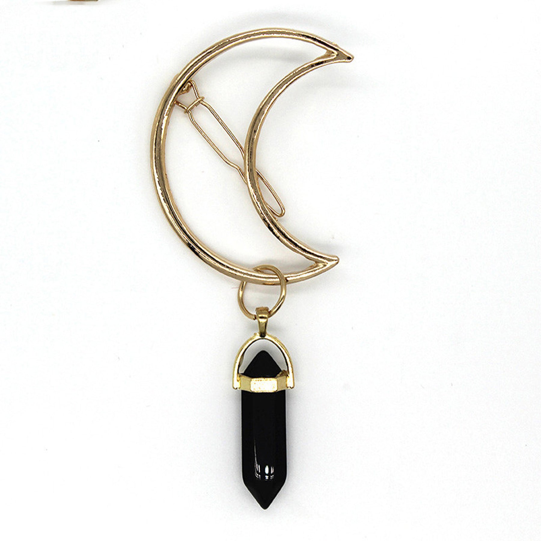 Neoma Moon with Opal Gemstone Pendant Hair Clip Barrette Jewelry