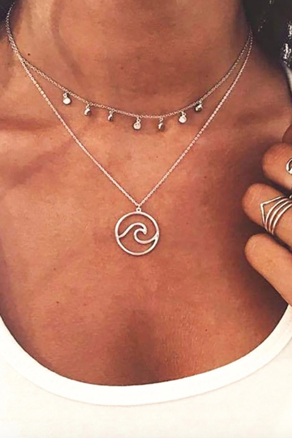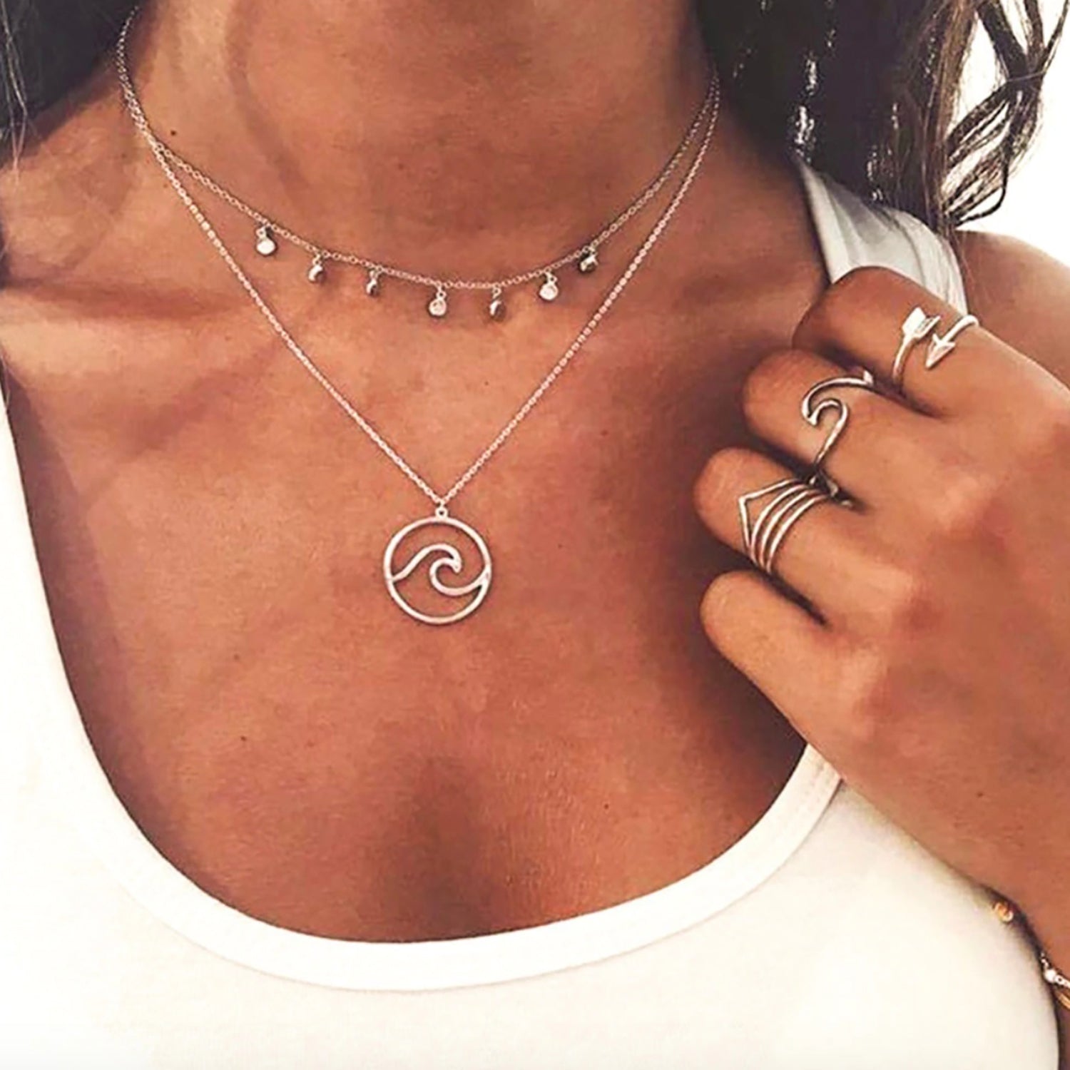 Sandy Cute Beach Ocean Surf Wave Layered Silver Choker Necklace