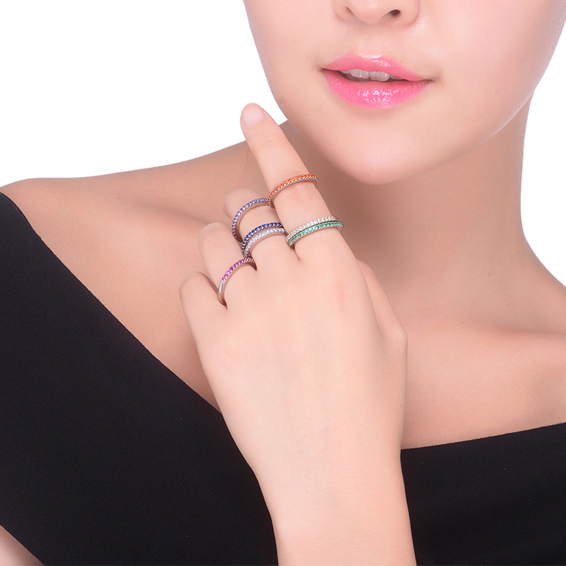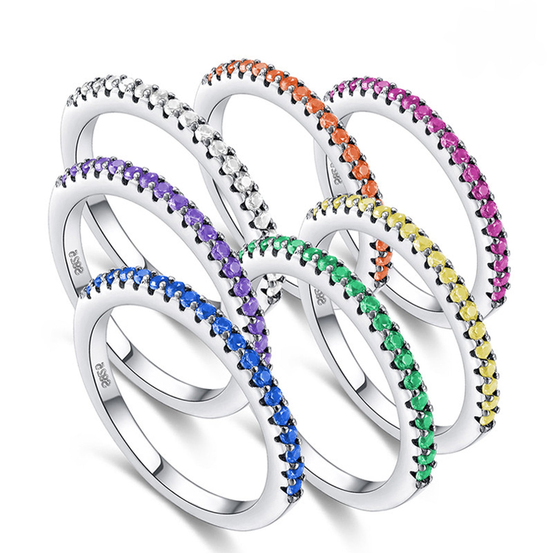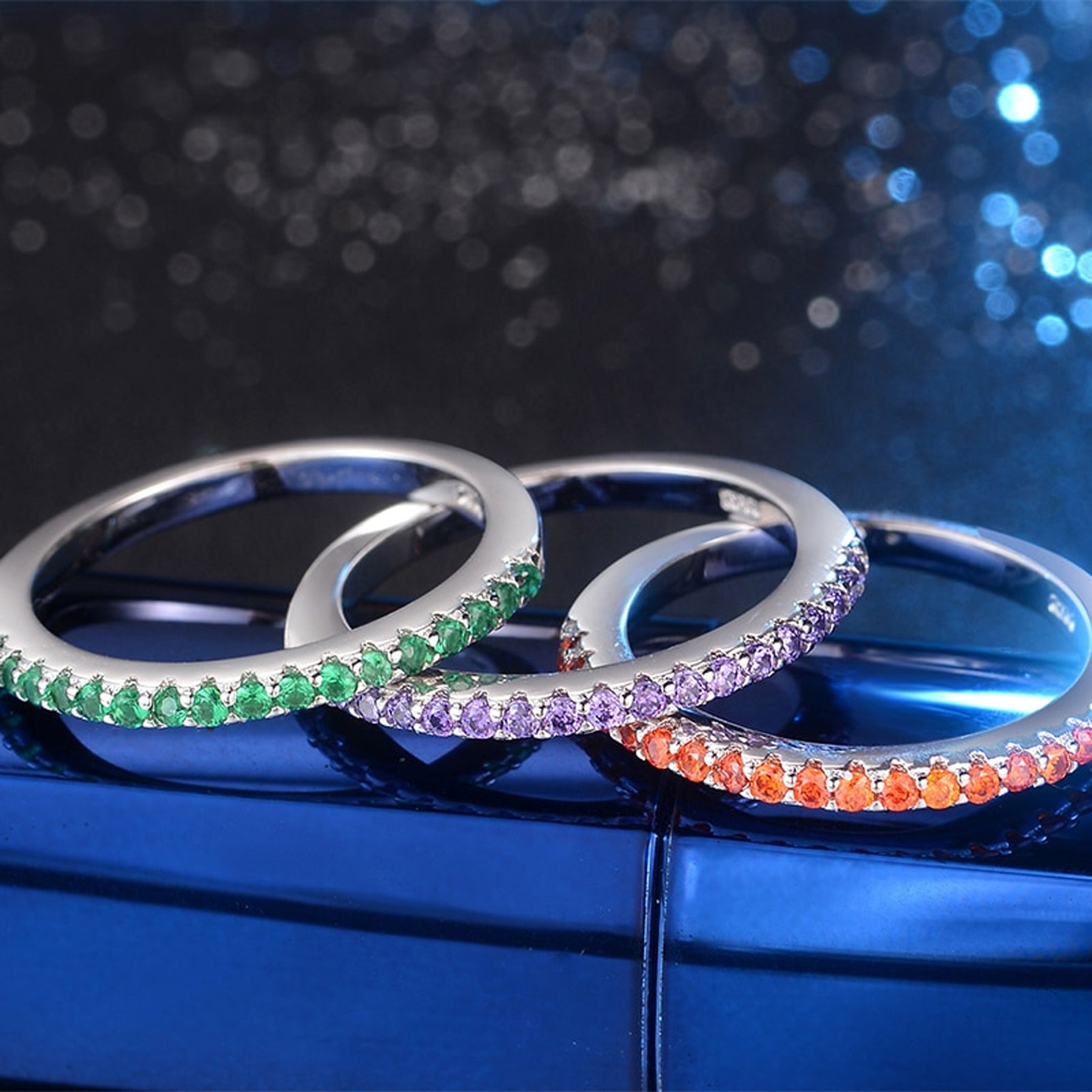 Shimmer Dainty Colored Rainbow Crystal Gemstone Pave Stackable Rings in Silver