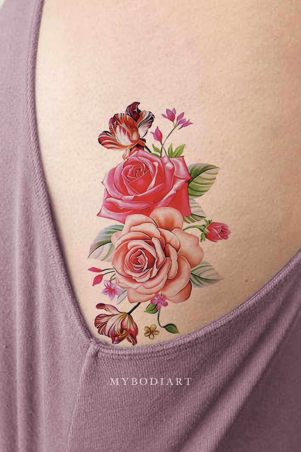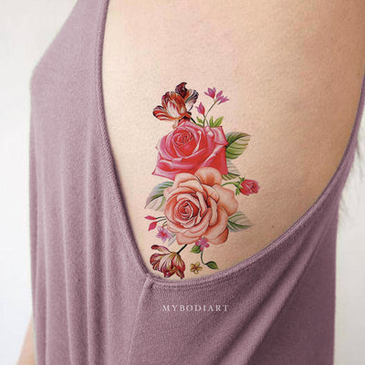 Pink Floral Flower Arm Temporary Tattoo at MyBodiArt