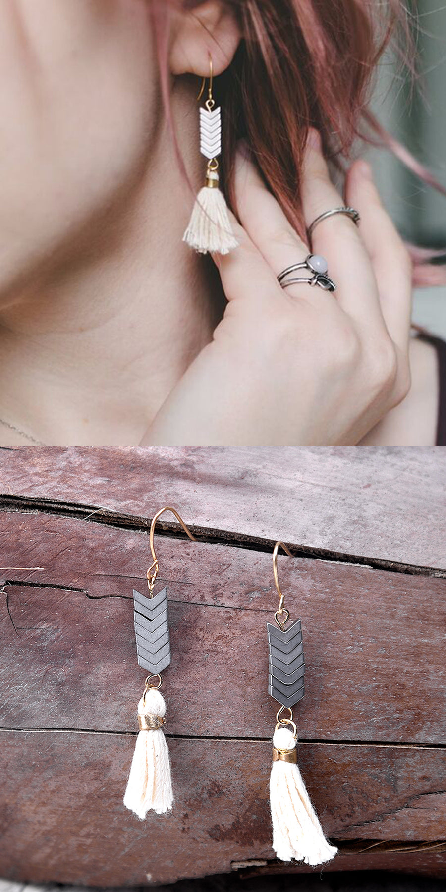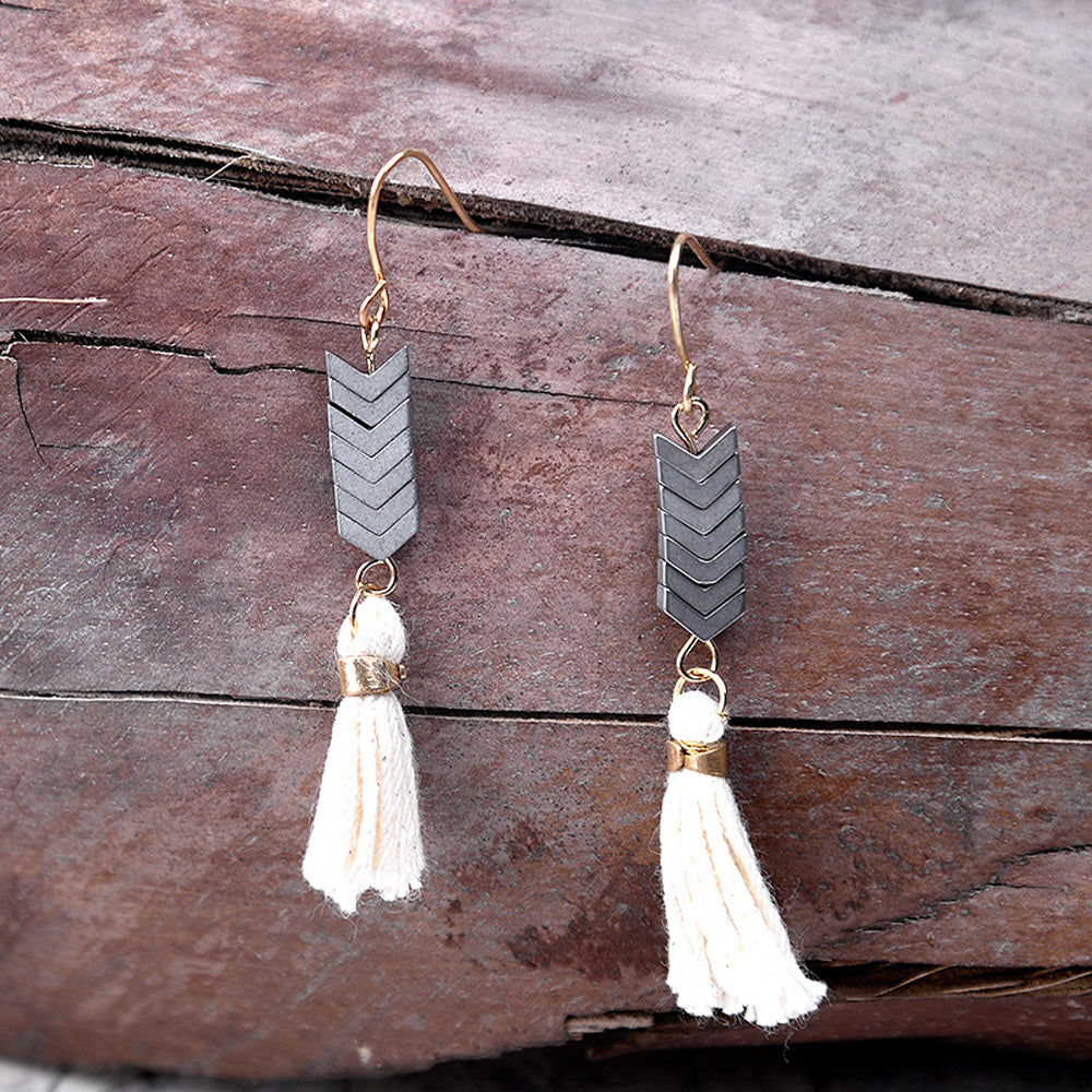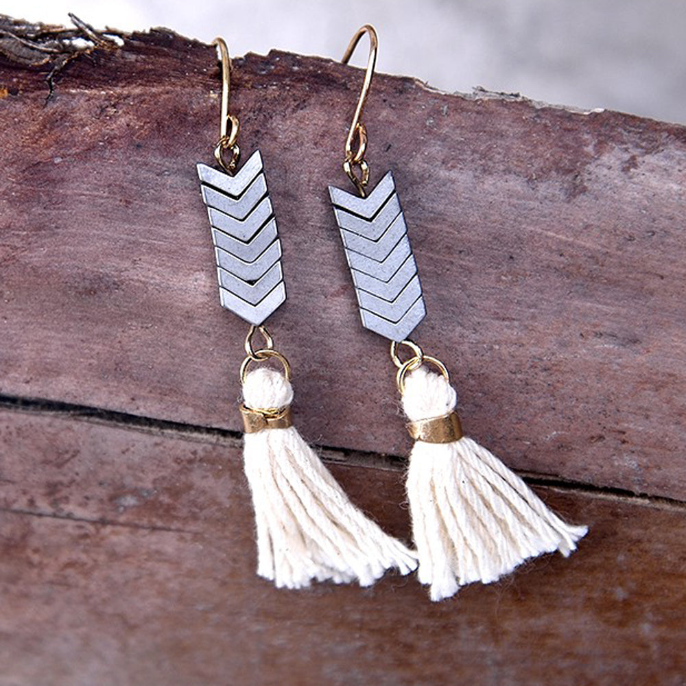 Wild & Free Bohemian Ethnic Tassel Arrowhead Dangle Earrings